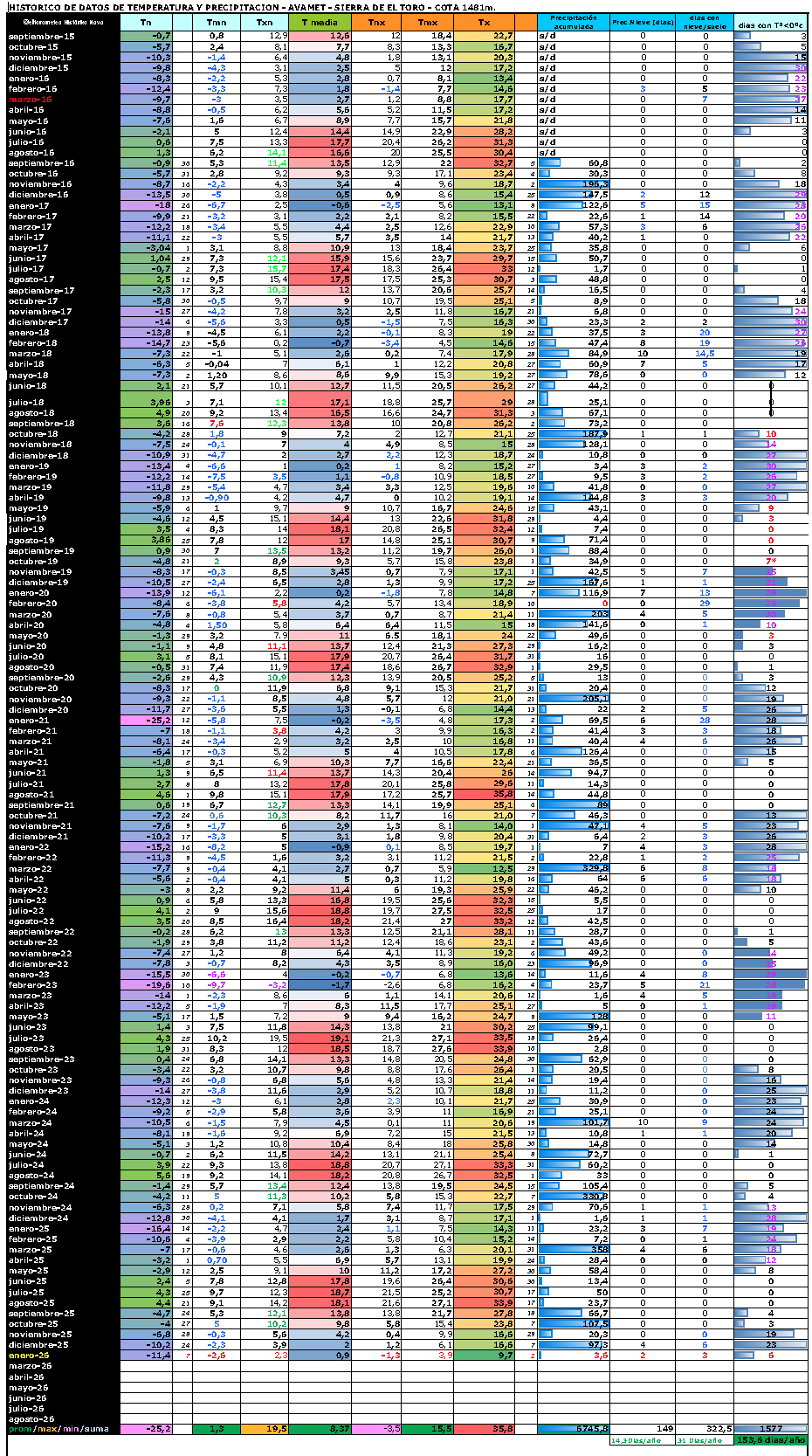 Históricos estación automatica - casco urbano de El Toro, alt. 1009m.             +Datos (avamet)