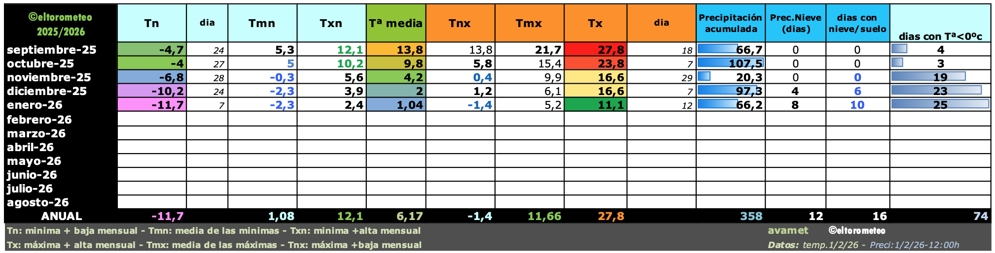 Datos actualizados temperatura y precipitación el 07/01/2026